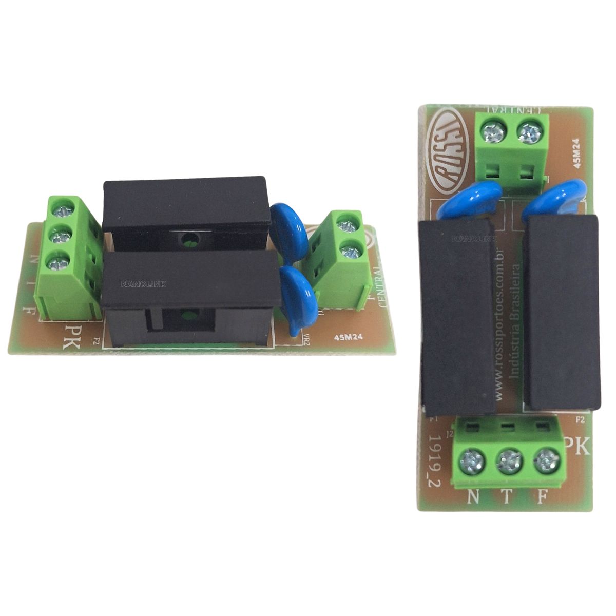 Placa de proteção contra oscilação de tensão. Em caso de variação brusca na rede elétrica os componentes se rompem evitando que a sobrecarga queime a central de comando. Ligue sua placa PK antes da central de comando usando a saída da rede.